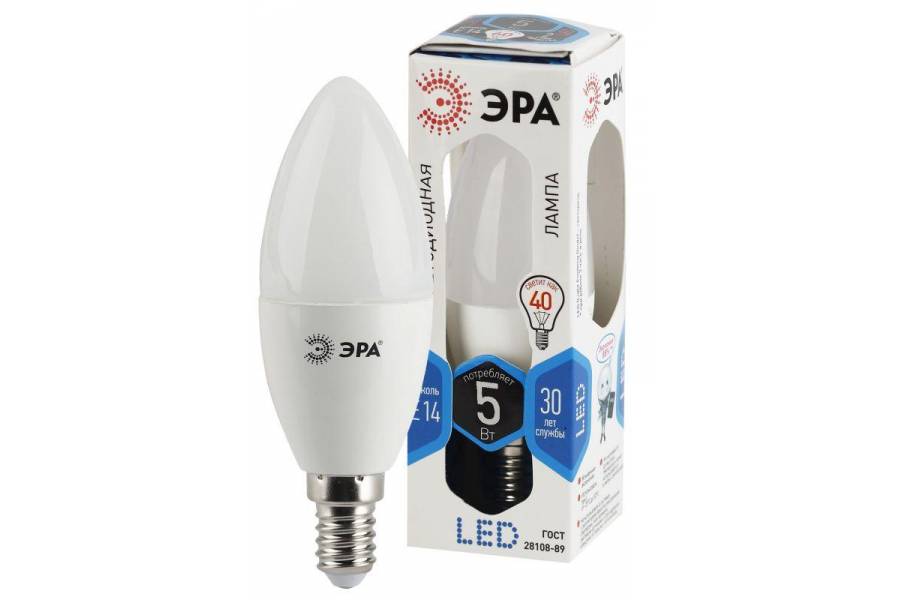 Лампа светодиодная B35-5w-840-E14 свеча 400лм ЭРА Б0018872