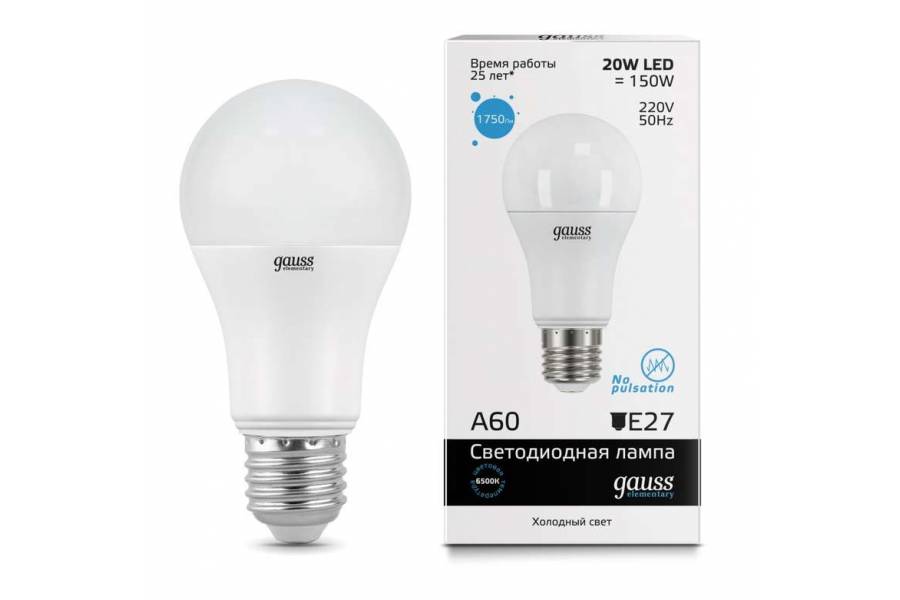 Лампа светодиодная Elementary A60 20Вт грушевидная 6500К холод. бел. E27 1750лм 180-240В Gauss 23239
