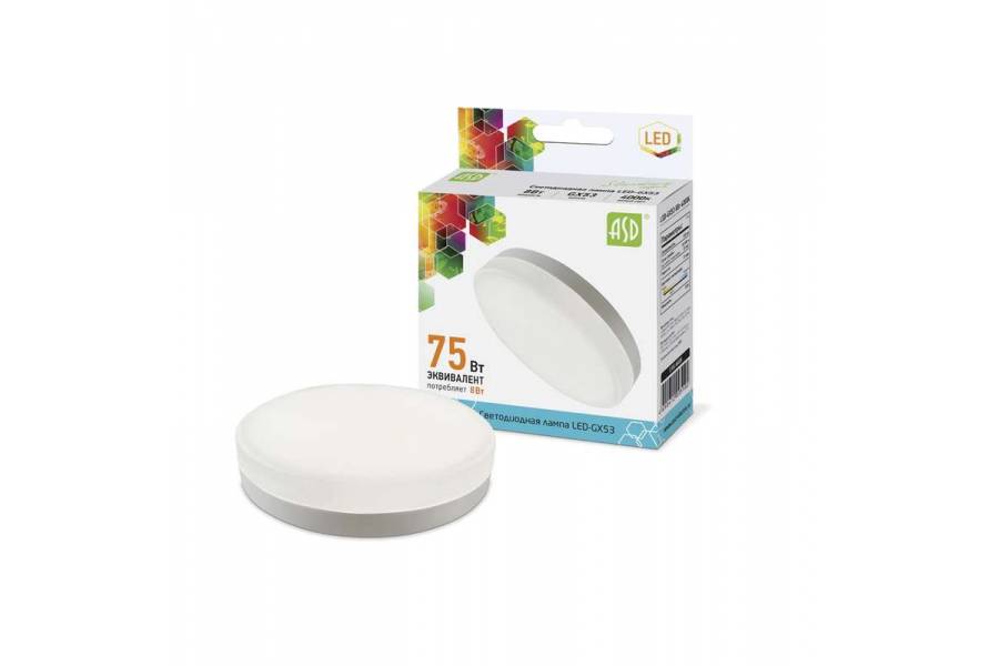 Лампа светодиодная LED-GX53-standard 8Вт таблетка 4000К GX53 720лм 160-260В бел. ASD 4690612005102