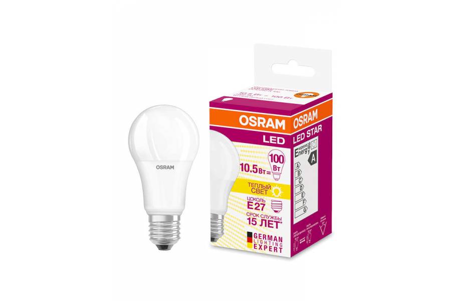 Лампа светодиодная LED STAR CLASSIC A 100 10W/827 10Вт грушевидная 2700К тепл. бел. E27 1060лм 220-240В матов. пласт. OSRAM 4052899971578