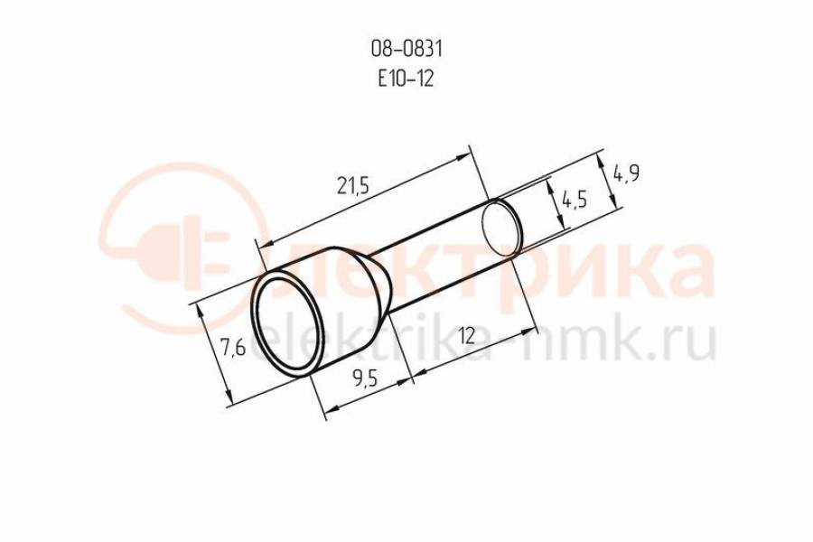 НАКОНЕЧНИК ШТЫРЕВОЙ ВТУЛОЧНЫЙ изолированный (НШВИ F-12мм) 10мм? (E10-12, СЕ100012red) красный REXANT предназначен для создания быстрого и качественного подключения различного электрооборудования и монтажа электросетей. Такой современный способ подготовки кабеля к соединению заменяет процесс облуживания или скрутки многожильных медных проводов, формируя целостностное окончание кабеля с последующим подключением промышленного или бытового электрооборудования. Втулочный наконечник состоит из латуни, с поверхностным электролитическим лужением, и рассчитан на монтаж одного проводника с соответствующим сечением под опрессовку. Предварительно зачищенная жила заводится внутрь латунной втулки, и обжимается специальными пресс-клещами (HT-8164 арт.12-3206; HT-301E арт.12-3114; HT-301S арт.12-3119, 12-3019, 12-3019-4) в считанные секунды. Для удобства заведения многожильного провода внутрь латунной втулки предусмотрена манжета конической формы, изготовленная из поливинилхлорида (ПВХ), обеспечивающая надежную защиту соединения от влаги и других внешних воздействий. Технические характеристики: