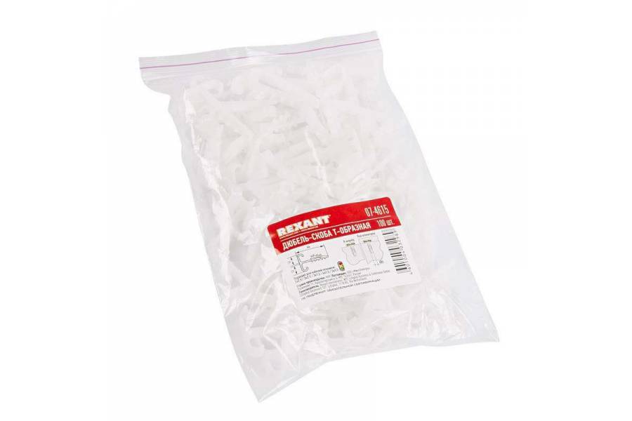 Дюбель-хомут Т-образный для двух плоских кабелей 2х12 КФ (уп.100шт) Rexant 07-4615