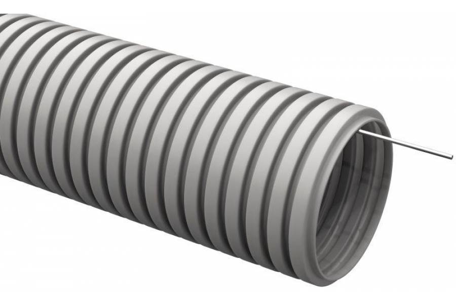 Труба гофрированная ПВХ d20мм с протяжкой сер. (уп.50м) IEK CTG20-20-K41-050I