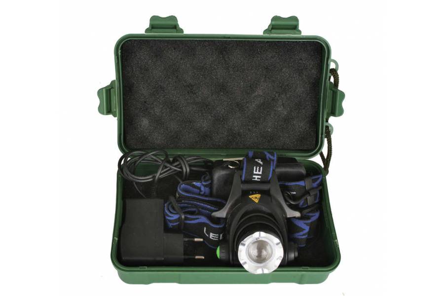 Фонарь налобный E150 (аккум. 220В CREE 3Вт пласт. бокс; черн.) Ultraflash 12188