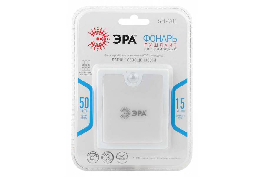 Светодиодный фонарь подсветка ЭРА Пушлайт SB-701 с датчиком движения и освещенности