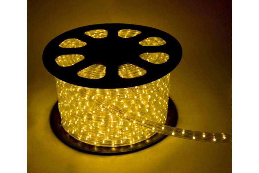 Шнур светодиодный Дюралайт постоянного свечения 2W 220В 1.8Вт/м d13мм (уп.100м) IP44 желт. Космос KOC-DL-2W13-Y